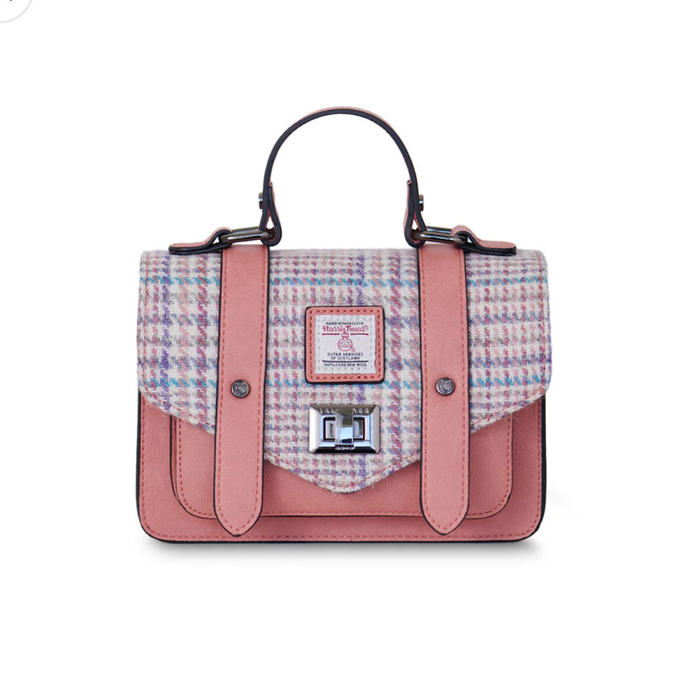 Mini Satchel Bag Pink Dogtooth Harris Tweed